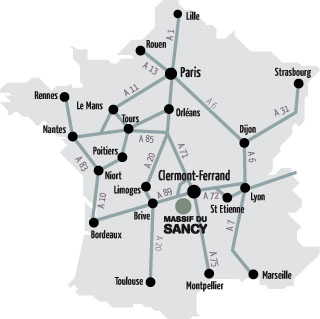 • A89 : Bordeaux, Brive, Ussel, Clermont-Ferrand (sortie 25 Saint-Julien/Sancy)
